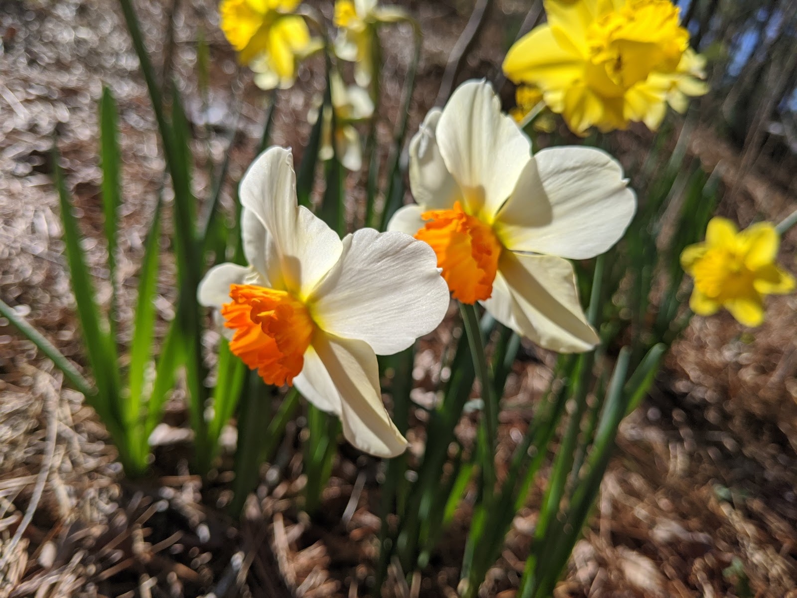 Starting with the daffodils- there are so many blooming right now. Some varieties are known, but not all.